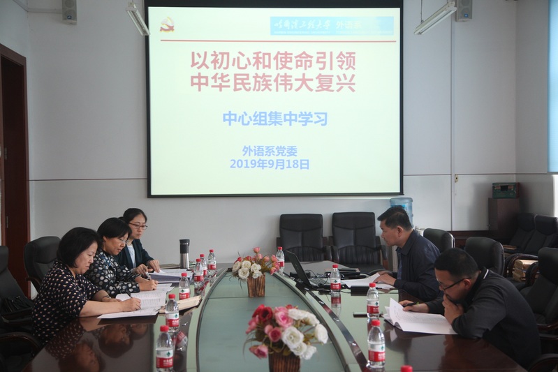 根据校党委统一部署,外语系领导班子于9月18日在41#楼417组织开展了“不忘初心、牢记使命”集中学习。集中学习有系党委书记赵欣主持,班子成员全体出席。