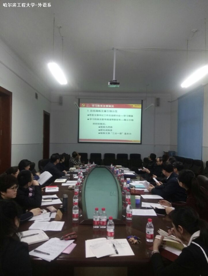 系分党委书记赵欣就“两学一做”学习教育及学习贯彻全国高校思政工作会议精神的工作情况进行了汇报。汇报内容围绕:学习教育开展概况、主要做法、实践效果、体会思考四个方面展开。随后,七个教工党支部书记结合各自党支部开展“两学一做”学习教育、贯彻高校思政工作会议精神的情况进行了汇报与交流。