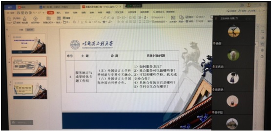 学院17位教师集思广益,就学院如何服务龙江;社会服务可以做哪些事;可以和哪些学校、机关或企业合作;具体合作的事宜是哪些;学科交叉点在哪里等五个问题展开了热烈讨论。大家结合自身岗位和工作经历踊跃发言,从自己的专业特长、教学授课、个人经历、兄弟院校的好做法等方面出发,分析学院发展面临的形势和任务,挖掘问题,分析不足,并提出了解决举措。