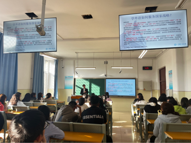 吴越书记以“牢记嘱托,再立新功”为切入点,带领同学们学习习近平总书记视察学校重要讲话精神,强调外语学子应牢记总书记嘱托,“树立科技报国志,刻苦学习钻研,勇攀科学高峰”。吴越书记回顾在战火中诞生的“哈军工”自建校以来完成了数百项高水平的科研成果,学校70年的风雨变迁始终与新中国命运息息相关,作为外语学子应传承“六个始终”的哈军工精神,通过弘扬中国传统文化,讲中国事、发中国声积极服务国家战略需要。最后,吴越书记勉励同学们“要多读书,要有规划,要不怕输,要敢担当;不要责怪抱怨,不要浪费时间,不要破坏规矩,不要放纵自己”,赓续“哈军工”红色基因,筑梦蔚蓝海洋,努力为成为有家国情怀、全球视野、专业本领的复合型外语人才的目标而不懈奋斗。