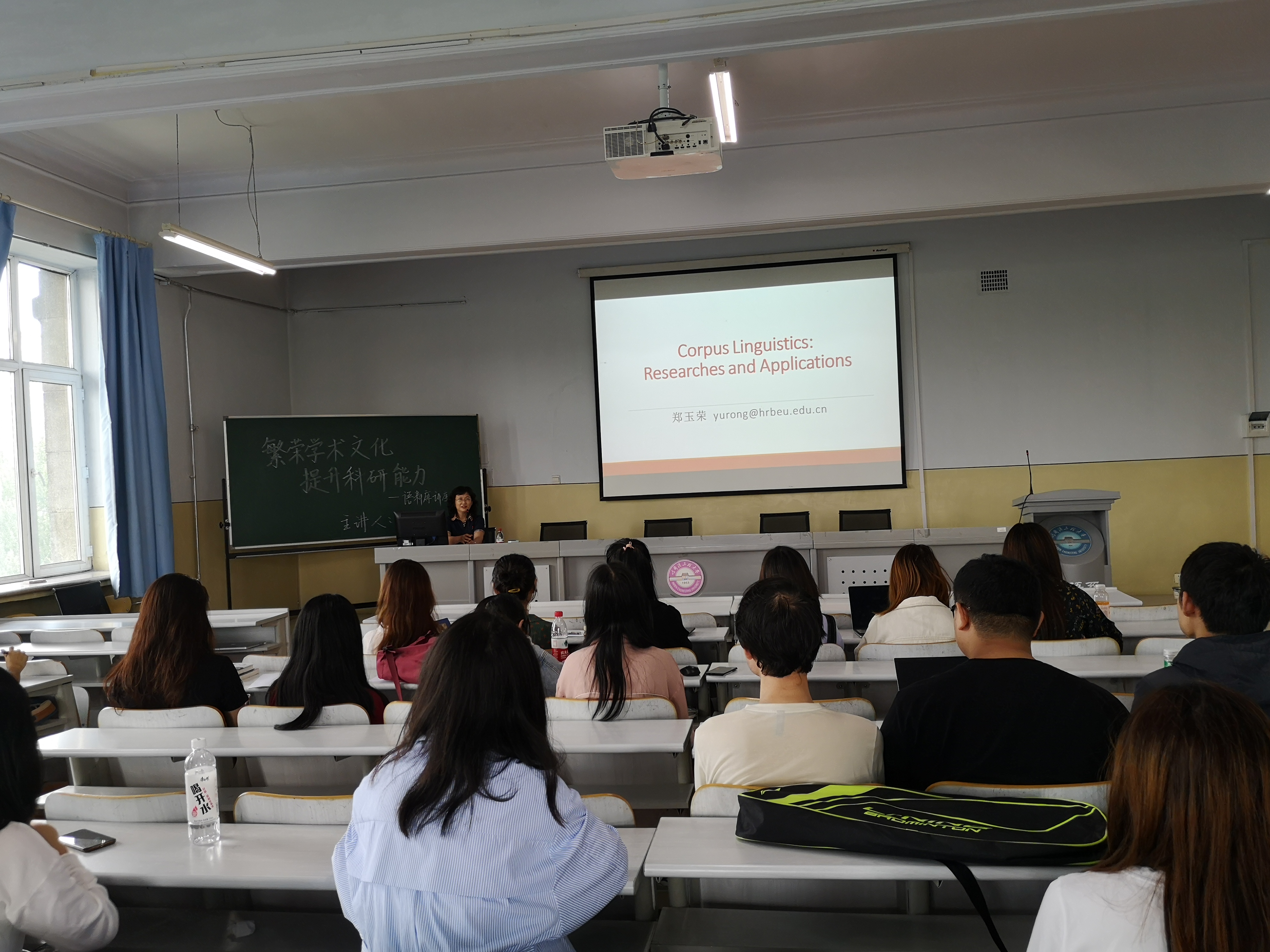 6月18日,在41号楼422学术报告厅,外语系郑玉荣教授以“繁荣学术文化,提升科研能力”为题,开展语料库语言学专题讲座,外语系研究生会主办,全体研究生参加。