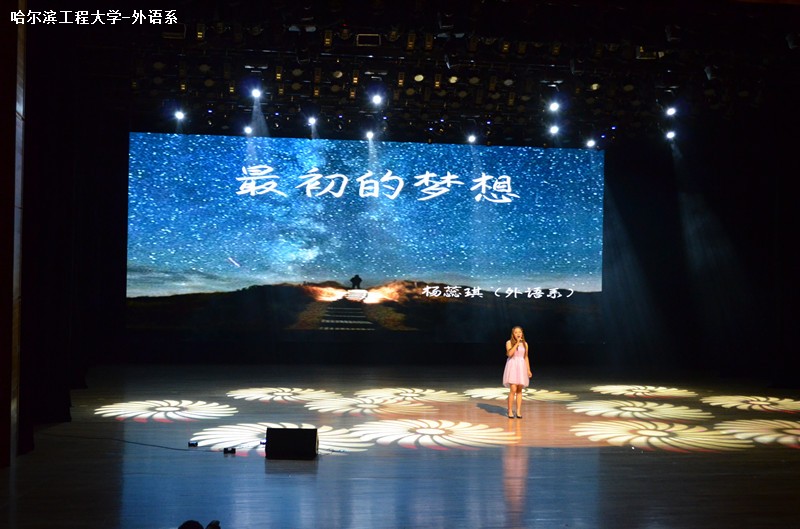 活动开始,一首激昂的《走进新时代》沸腾了全场的血液,也预示着新生们蓬勃崭新的大学校园生活。街舞表演、教师的舞蹈展示以及风趣幽默的话剧演出也无一不体现了哈工程的朝气与活力。外语系2015级杨蕊绮唱响了《最初的梦想》,她以优美且有力的演唱,也彰显了外语系不忘初衷、脚踏实地的信念与坚守。由外语系丁华誉带来的惊鸿舞,用轻盈飘逸、柔美自如的舞姿,真正诠释了翩若惊鸿,婉若游龙的雅致和不凡,赢得了阵阵的掌声和喝彩。此次活动在风 活动开始,一首激昂的《走进新时代》沸腾了全场的血液,也预示着新生们蓬勃崭新的大学校园生活。街舞表演、教师的舞蹈展示以及风趣幽默的话剧演出也无一不体现了哈工程的朝气与活力。外语系2015级杨蕊绮唱响了《最初的梦想》,她以优美且有力的演唱,也彰显了外语系不忘初衷、脚踏实地的信念与坚守。由外语系丁华誉带来的惊鸿舞,用轻盈飘逸、柔美自如的舞姿,真正诠释了翩若惊鸿,婉若游龙的雅致和不凡,赢得了阵阵的掌声和喝彩。此次活动在风趣诙谐的三句半中走到了尾声。
