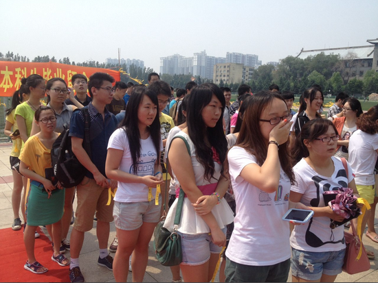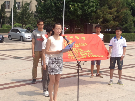 6月25日上午10点,外语系14届毕业生于31号楼陈赓像前参加由校学生工作处主办的“丝丝飘带留情母校”毕业留念活动。