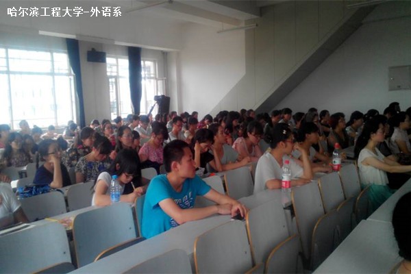 本次讲座共分为三部分。首先,Mark简单介绍了外文电影的相关信息,指出外文电影对于日常交流,对于英语爱好者出国深造以及教师教学的重要指导作用。Mark重点分析了书籍和电影的区别:1.电影能具体体现出不同的社会群体的语言表达方式,而书籍的语言表达受限制且不够自然和地道。2.电影中的人物形象更丰满,情感更丰富,而我们很难在书籍的字里行间准确把握人物的性格和情感。3.电影能更深刻的揭露出现实存在的社会问题,包括经济和政治问题。其次,Mark着重介绍了简短但富有价值的clip。他指出clip在电影中的重要地位,并说明其对于听力理解,单词运用和逻辑思维的锻炼和培养具有独到的好处。他以一个有关美国法律制度的场景为例,不仅扩展了一些法律词汇,而且拓宽了我们的认知领域。同样的,他又对中美两国对于年长者的态度进行了比较,语言生动活泼,引人入胜。最后,Mark介绍了symbolic competent以及教授Kransch Claire对语言的研究,他强调语言的运用,情景对话的出现要基于一定的背景,否则将显得突兀。在此环节中,他为大家创设了一个情景,并鼓励大家积极思考和想象并表演出来。大家积极的融入其中,体验着想象和语言的魅力。