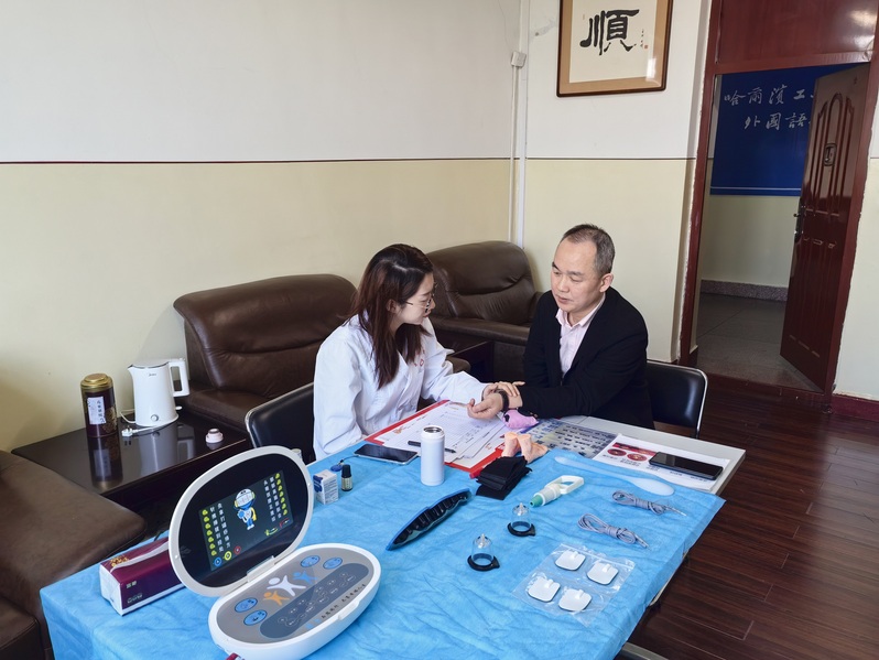 此次义诊为期四天,分别在每日上午9:00至11:30、下午2:00至4:30两个时段进行。活动现场设有中医号脉、颈腰椎健康评估、慢病调理指导、四季养生建议等多项内容,涵盖教师群体普遍关注的颈肩腰背问题、慢性疾病管理、以及日常饮食与作息调养。郭老师通过传统中医“四诊合一”的方式,细致辨识脏腑机能状态,并结合多年临床经验,就常见职业病的预防与缓解提供专业建议,还特别针对高血压、糖尿病等慢性疾病个体差异,给予科学可行的中医调理方案。