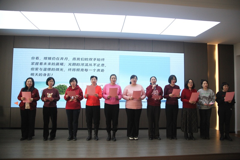 将现场气氛推向高潮的,是研究生公共英语教研部的《四季组诗》和院直党支部的《女性之美》朗诵。这两支队伍不仅着装整齐,还搭配了精心设计的展现本部门教职员工风采的视频。优美的画面与动人的朗诵相得益彰,生动地展现了女性在四季更迭中的坚韧与柔情,以及女性独有的魅力与力量。