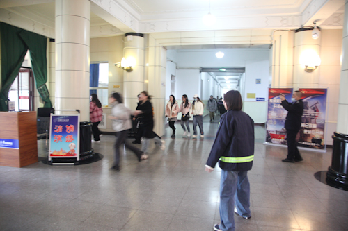 此次培训共分为疏散逃生演练、消防栓、灭火器使用要领讲解和灭火演练四部分。首先,由安全保卫处的老师向师生们介绍了消防疏散逃生技巧和消防栓使用要领。