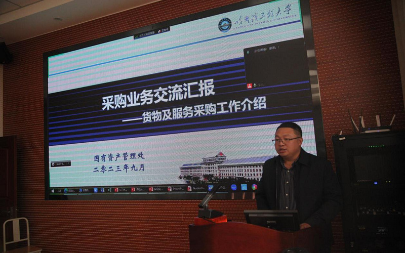 国有资产管理处吕宏明进行了采购业务专题培训。吕宏明介绍了学校采购限额标准、采购方式与适用范围、采购流程等重要内容。