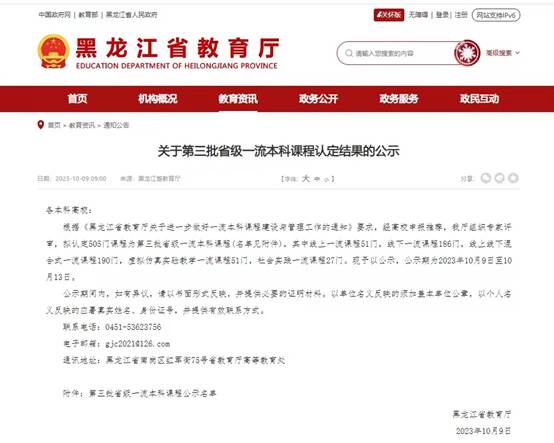 近日,黑龙江省教育厅公示了第三批省级一流本科课程认定结果,365英国上市集团3门课程入选,其中张俊南副教授主讲的《英语演讲》入选线上一流课程、毛延生教授主讲的《语言导论》入选线下一流课程,杨秀娟教授主讲的《综合英语(1-4)》入选线上线下混合式一流课程。