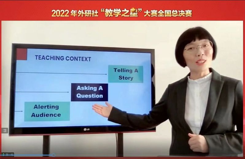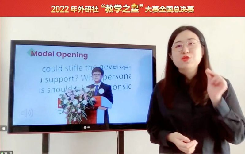 总决赛由教学设计介绍、课堂教学展示及现场问答3个环节组成,我校参赛团队按国赛要求经过近一个月时间精心准备《英语演讲教程》,深挖教材理念,聚焦中国绿色发展模式、举措、成就,并结合世界地球日主题,设置学生演讲任务,实现外语教材到教学的贯通,达到思想性与科学性相统一。吴源、李可欣两位老师现场课程教学展示环节设计新颖,将课前任务与课上理论知识讲解有机融合,激发学生学习内驱力,并将学生演讲练习与多维评估紧密结合,提升学生思辨能力与跨文化交际能力,培养学生的国际视野、家国情怀和文化素养;现场问答环节,回答精准、流利、完整、重点突出,展示出一流专业教师团队的素质和水平。团队在省赛中取得全省外语金课团队大赛特等奖,并作为黑龙江省唯一晋级全国总决赛团队,最终在2022年外研社“教学之星”大赛全国总决赛上获得季军。