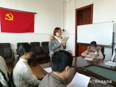 11月30日12时30分,外语系团委在41号楼417教室举办“青年志,国家强”主题英语演讲比赛,旨在结合英语专业特色开展政治理论学习,加深对于十九大报告的理解,不负习总书记“青年一代有理想、有本领、有担当,国家就有前途,民族就有希望”的殷切期望。比赛由外语系英才基地团委副书记汤茜雅主持,研究生党员杨权、赵旭亮、徐梦雪担任比赛评委。所有外语系团委学生会部长及以上学生干部参加比赛。