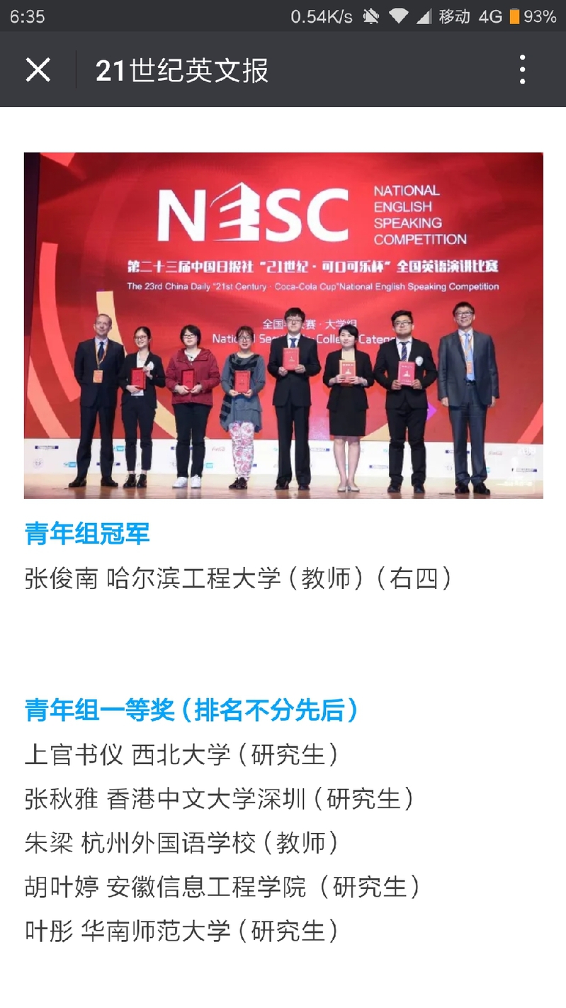 去年组委会又增设了青年组比赛,主要面向往届优秀选手、指导教师、研究生及社会各界热爱英语演讲的人士举办,首次举办即吸引全国18个赛区千余人参赛。组委会经过层层选拔,最终在这千余名选手中选出6位晋级全国总决赛。张俊南作为英国上市公司365及黑龙江省赛区的代表入围总决赛。
