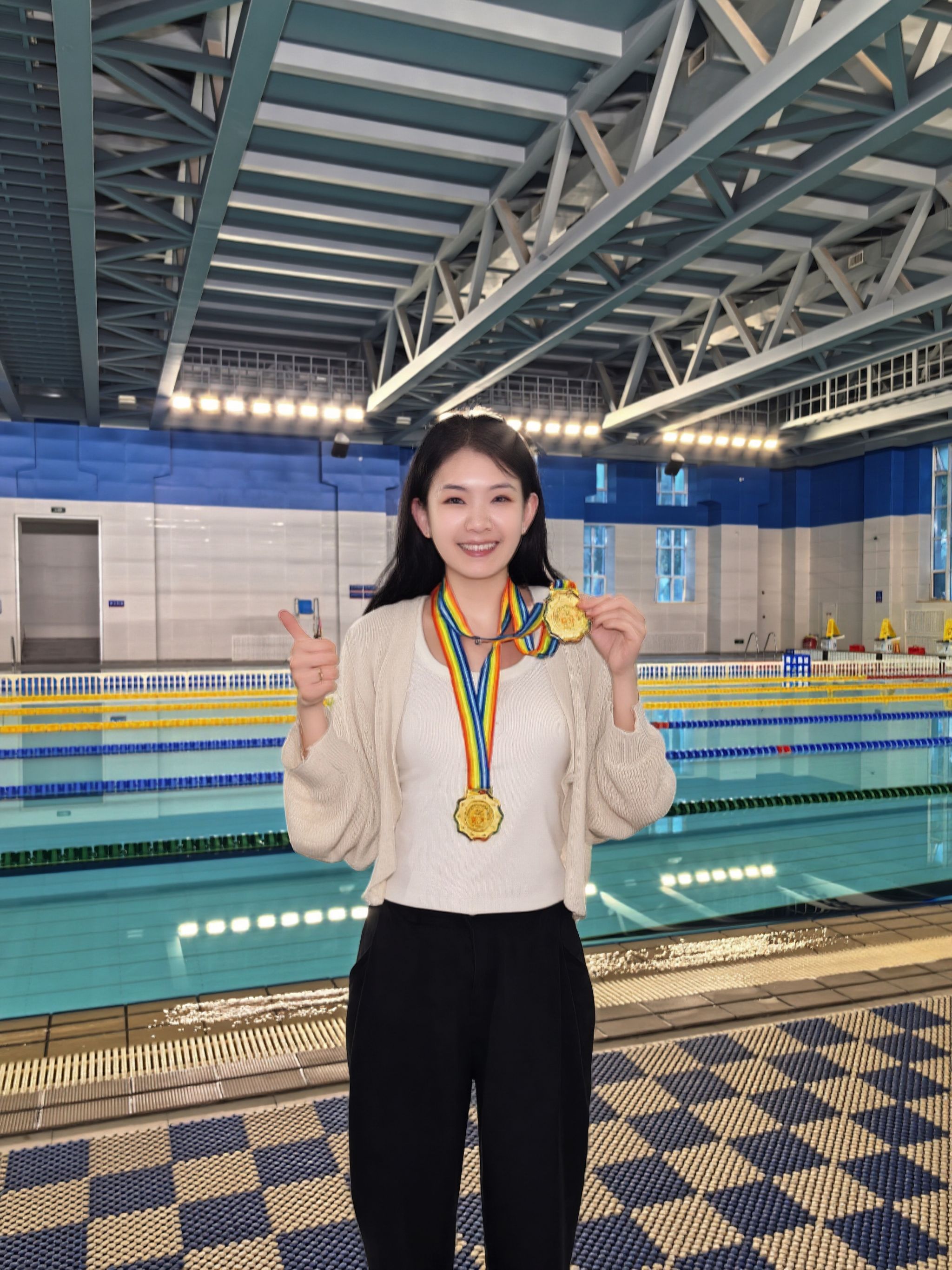 本次比赛设置了男女组50米仰泳、蛙泳、蝶泳、自由泳;100米蛙泳、4×50米混合泳接力等11个比赛项目,既有个人实力的比拼,也有团队协作的较量。在女子组50米自由泳、50米蛙泳项目中,365英国上市集团郭嘉铭以矫健的泳姿劈波斩浪,荣获两项双冠军的完美佳绩。