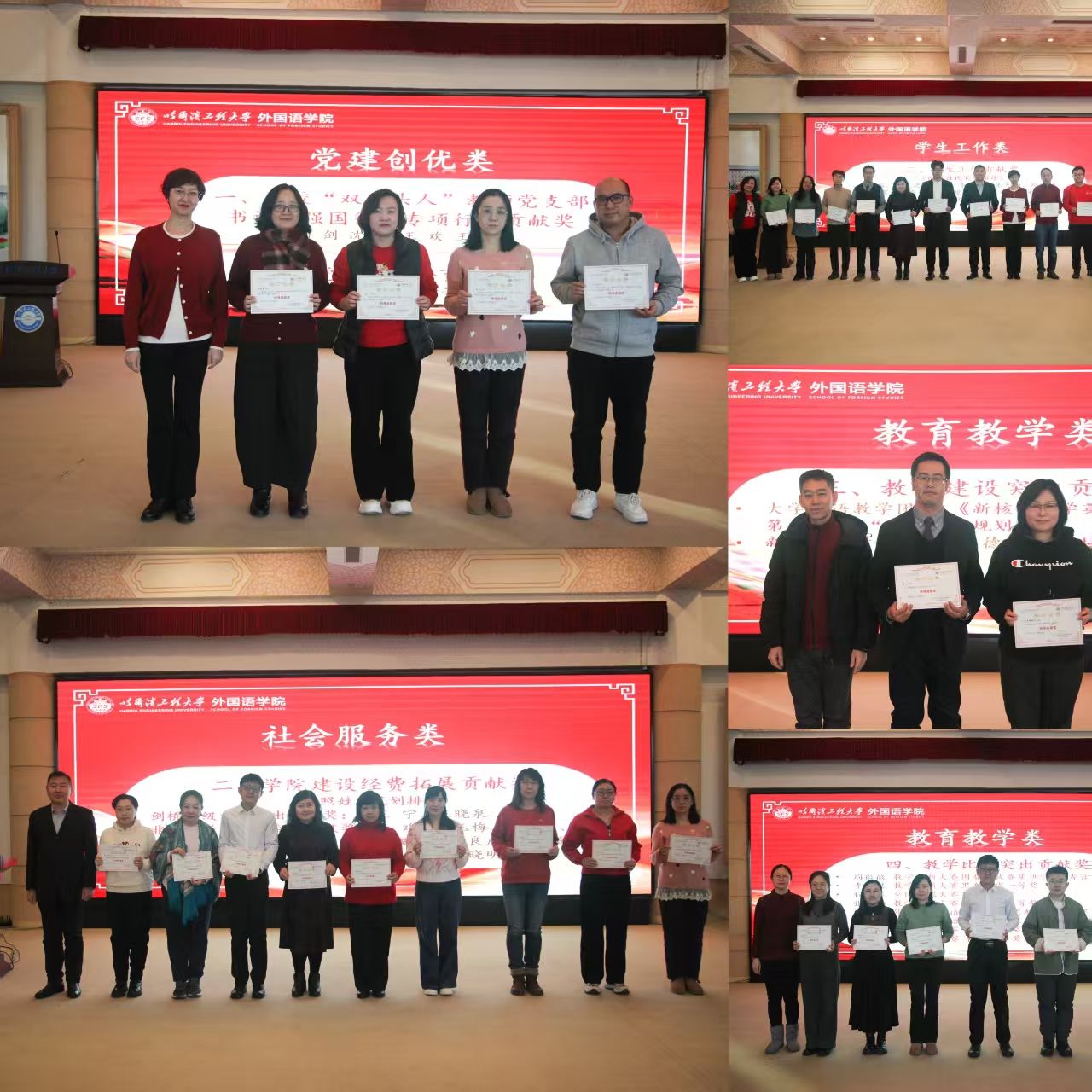 在精彩的文艺节目之间,穿插进行了2025年度学院先进表彰环节。学院领导宣读了表彰决定,分别向在教学、科研、育人、管理与服务等方面取得突出成绩的教师颁发了“年度教学贡献奖”、“年度科研创新奖”、“年度育人标兵奖”、“年度管理与服务贡献奖”等多个奖项。获奖教师们爱岗敬业、潜心育人的感人事迹和取得的优异成绩,赢得了现场阵阵掌声。这不仅是对获奖教师个人辛勤付出的肯定,更是对全院教职工坚守教育初心、担当育人使命的激励与鼓舞,有力营造了崇尚先进、学习先进、争当先进的良好院风。
