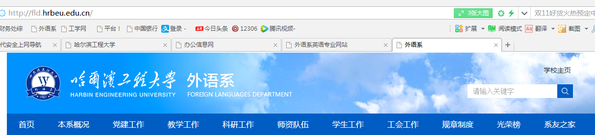 图1.外语系网站及英语学习平台分布区域(下拉网页至底端)